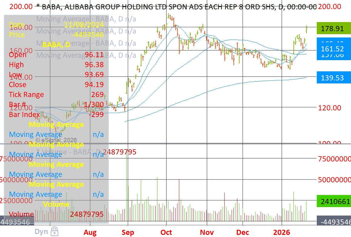 Broader context: BABA has been on a tear (up ~100%+ over the past year from lows), fueled by AI/cloud momentum, buybacks, and easing regulatory fears.