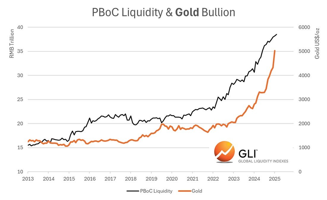 China PBoC Liquidity vs Gold