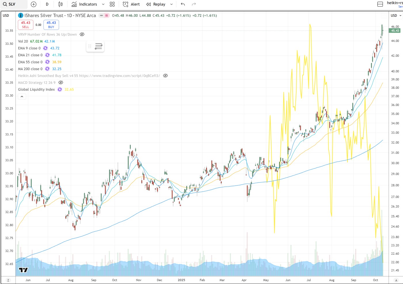 Trump's declaration of 100% tariffs on China as of Nov 1 spurred a cryptocrash with the largest liquiditation in history of beyond $20 billion. Meanwhile, gold and silver held strong.