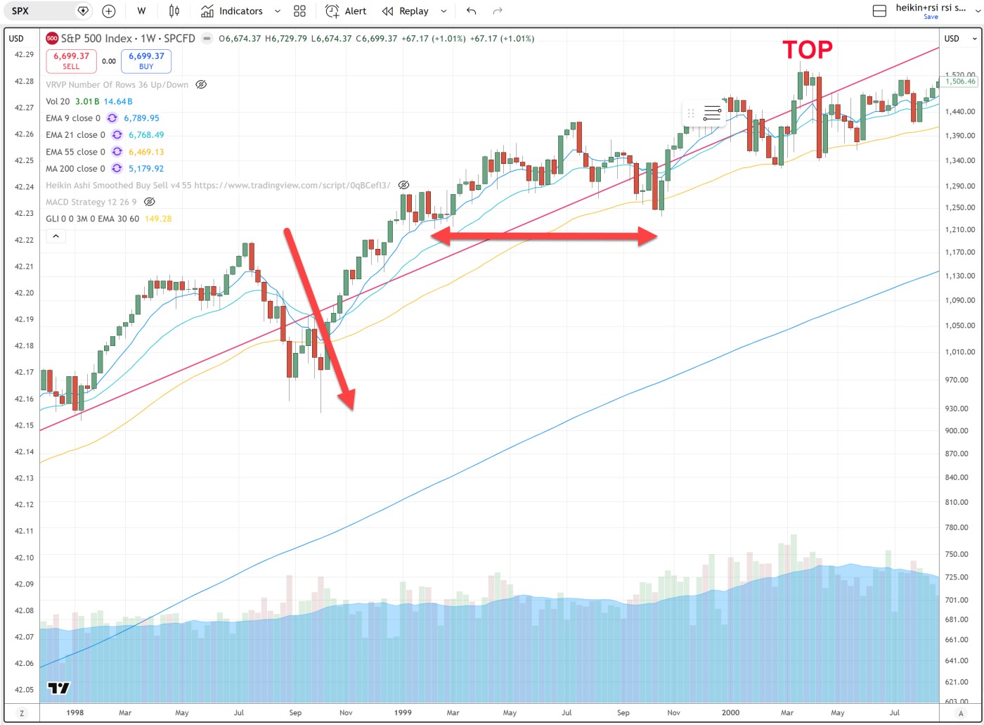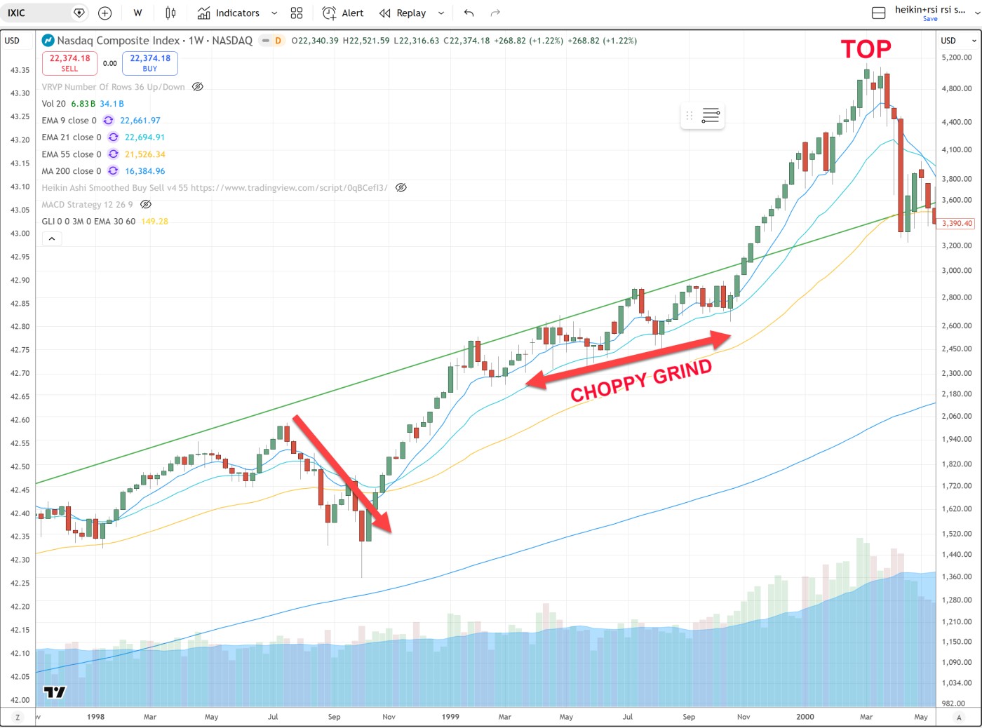 Even the dot-com boom had steep corrections in late 1998 then chopped sideways in the second and third quarters of 1999 as sharp gains needed to be digested.