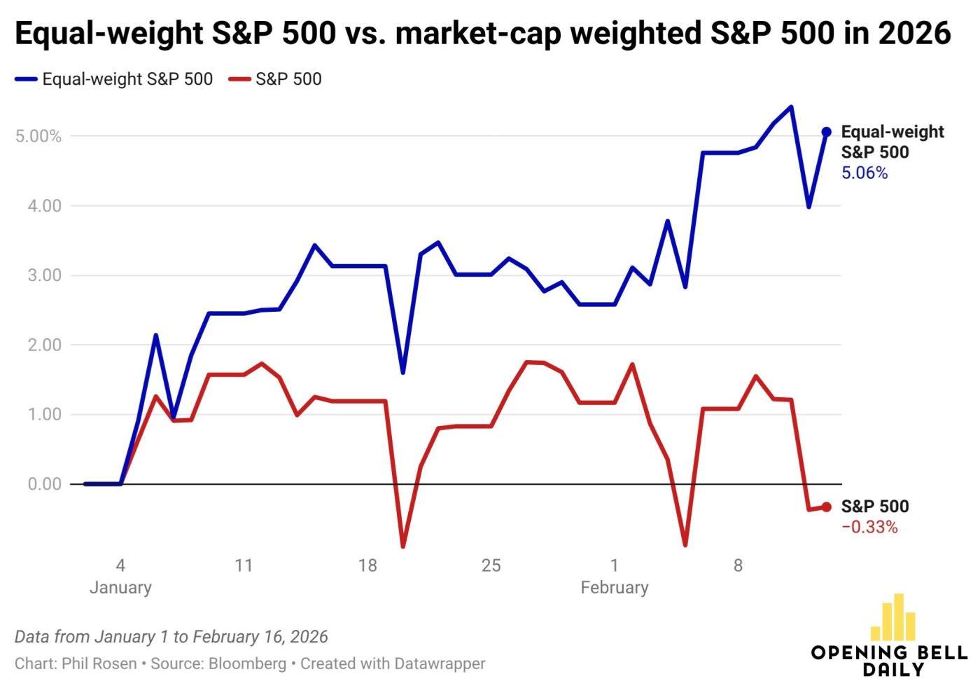 Further, the average S&P 500 stock is doing well while overvalued Big Tech has been weak. Capital has been rotating from tech to other sectors rather than leaving the market altogether. For the first time in years, gains are becoming less narrowly concentrated in a handful of trillion-dollar companies which has typically been a sign of improving market health as breadth and participation widen.