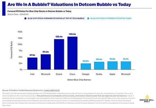 Leading tech companies such as NVDA, AAPL, and MSFT currently trade around 30x forward earnings while generating record cash flows and profitability and GOOGL looks even cheaper. Back in the late 90s near the height of the dotcom bubble, CSCO and ORCL traded above 120x earnings while Microsoft’s multiple was roughly double its current level.