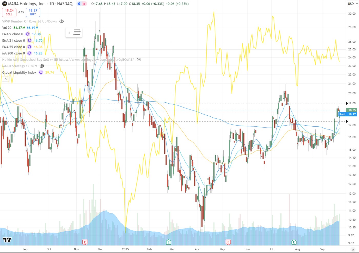 Just after we posted a report on the potentialities around MARA as it then finished the day with a pocket pivot off its 10-dma, just head of the down volume day on Sept 17.