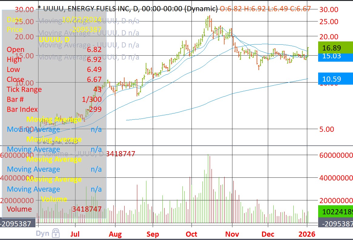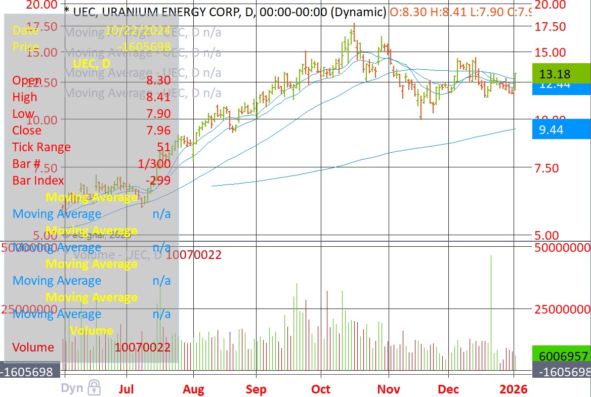 UEC- earlier pocket pivot which is breaking above 50-dma