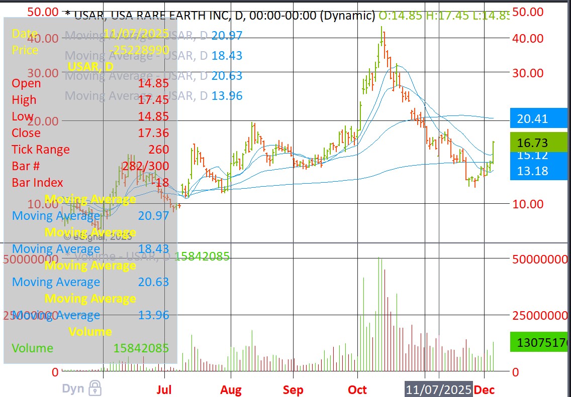 USAR (rare earths) through 200dma and 20dema.