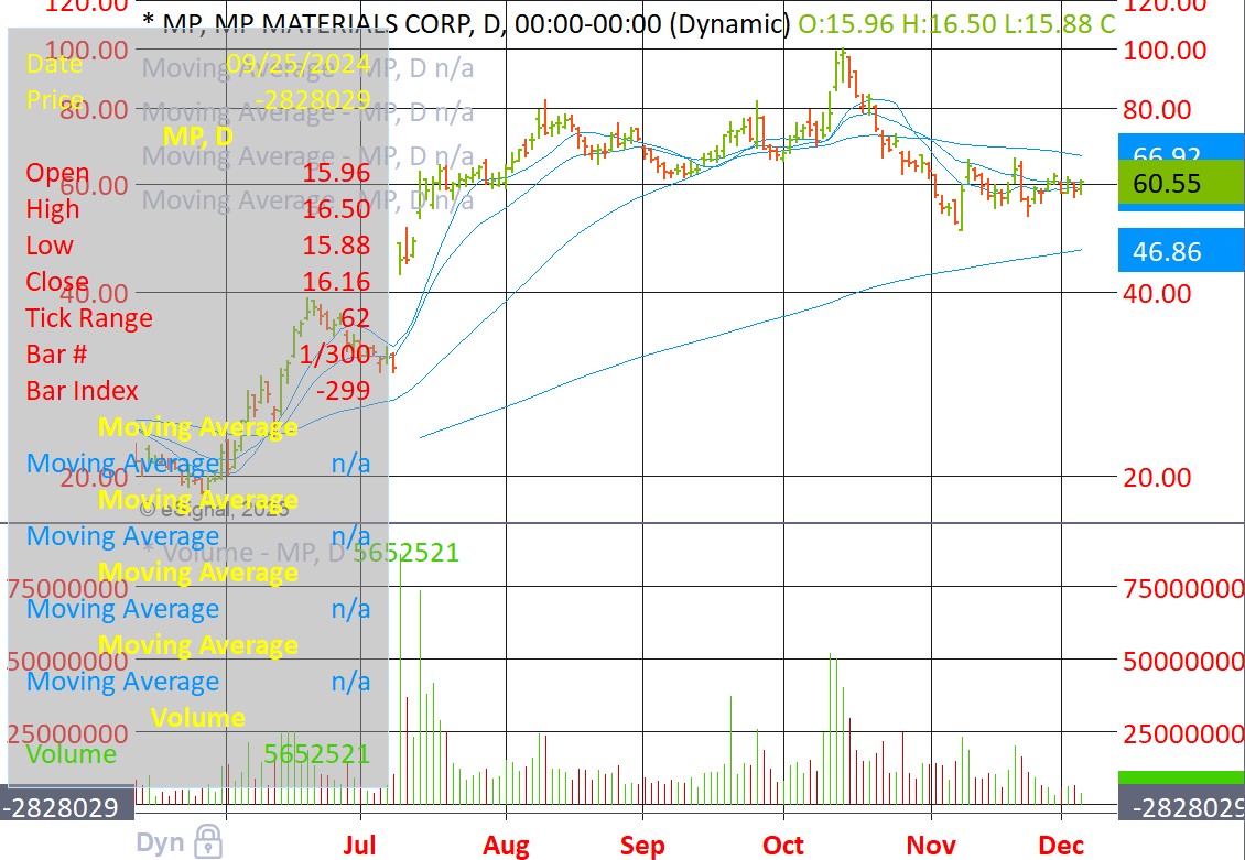 MP materials (rare earths) should follow suit, currently a volume dry-up.