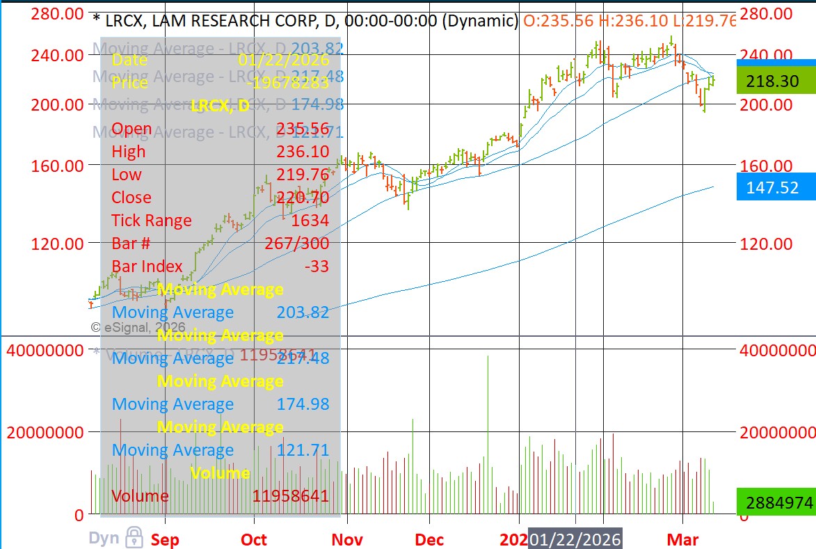 LRCX weak bounce into its 50-dma.