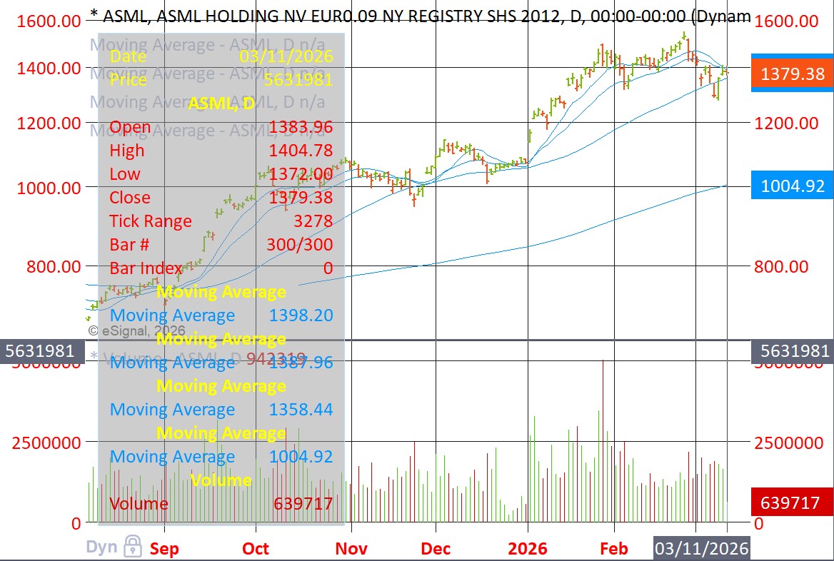 ASML below its 10-dma and 20-dema: