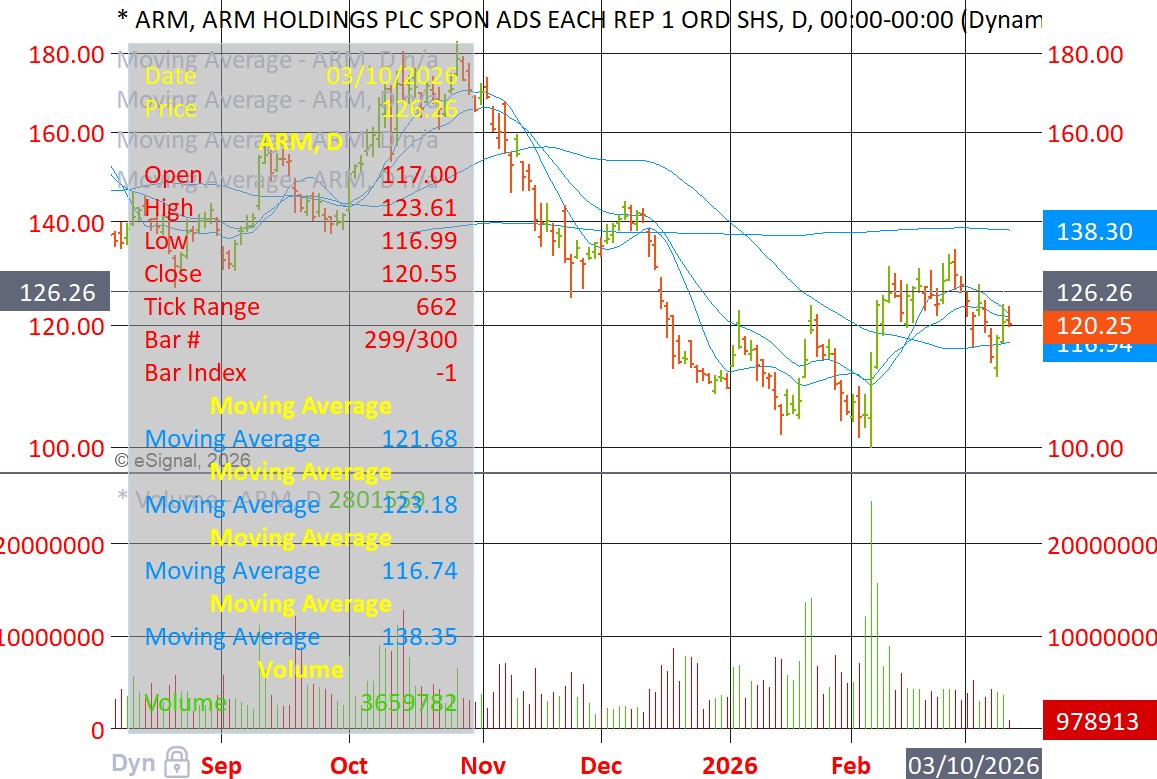 ARM below its 10-dma and 20-dema: