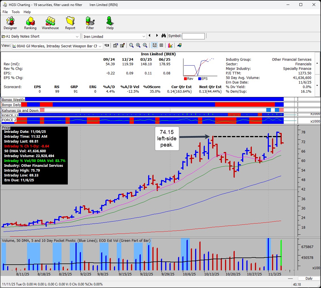 Short-Sale Set Up - IREN Ltd. (IREN) 11/6/25