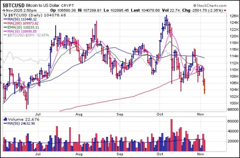 This was the process that created this phenomenon that Bill also talked about which is that the market is topping even as it continues to rally higher. And we have seen this in concrete terms as the charts of various economically-sensitive areas of the market have been in downtrends as tech continues to push the indexes higher.