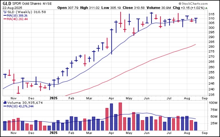 Gold and silver both rallied, but gold remains in a very tight 18-week base as it continues to tighten up. Friday's Powell speech pushed the