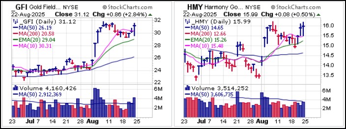 Gold Mining (HMY) both posted pocket pivots on Friday. While miners were up strongly across the board on Friday, many of these are already in extended positions so not in chart positions where long entry set-ups can occur.