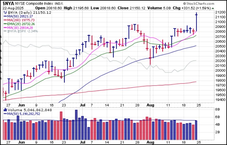 NYSE Composite Index as the de facto big-stock market-leading index after thrusting to all-time highs on Friday while the other indexes rallied back up towards prior highs.