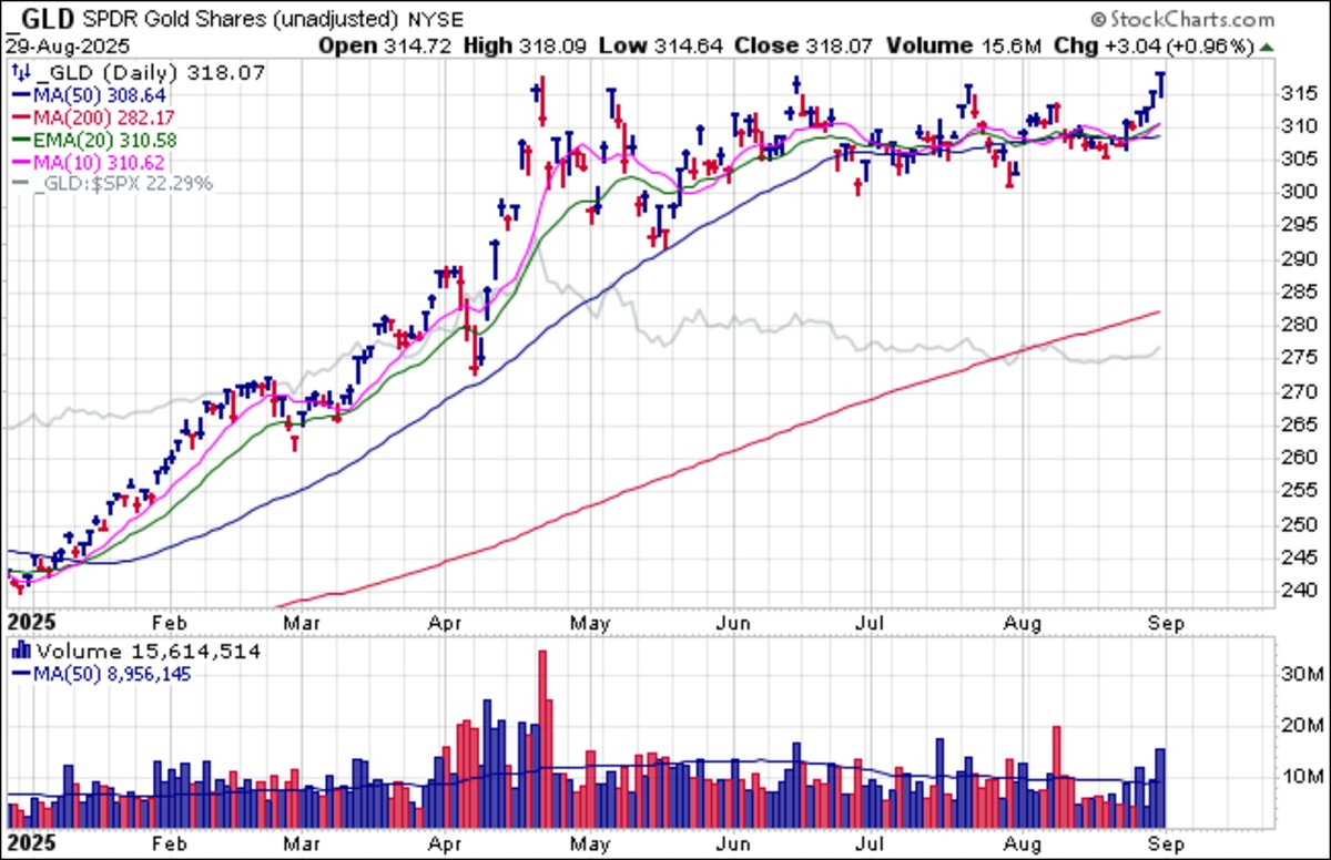 SPDR Gold Trust (GLD) to all-time highs. We have previously noted the constructive action in gold and the GLD on the weekly chart as it continued to tighten up in bullish fashion.