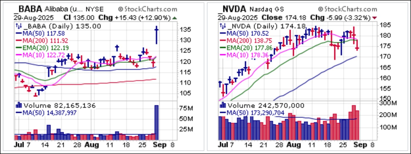 AI meme names took some heat on Friday in a delayed reaction to Nvidia (NVDA) earnings Wednesday after the close. The sector again came under scrutiny on Friday when big-stock Chinese E-Commerce name Alibaba (BABA) reported earnings Friday before the open. BABA is a bit like Amazon.com (AMZN) as it is part e-commerce, part tech, and its earnings report revealed a new AI chip that is allegedly being designed to be more versatile than BABA’s previous chips and to be compatible with NVDA’s software ecosystem, allowing developers to easily adapt code written for NVDA hardware.