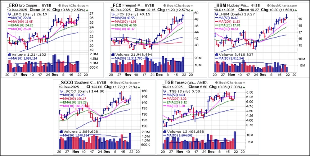 Hudbay Minerals (HBM) have been in steady Santa Claus rallies since bottoming back in late November. Other coppers, like