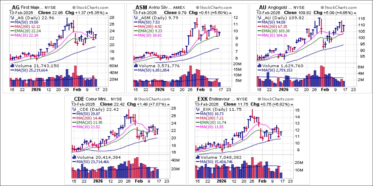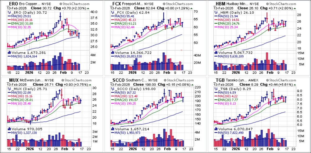 Finally, gold and silver miners that we reported on early in January as long set-ups had great moves into the end of January but have since gone into correction mode as gold and silver pause/correct.