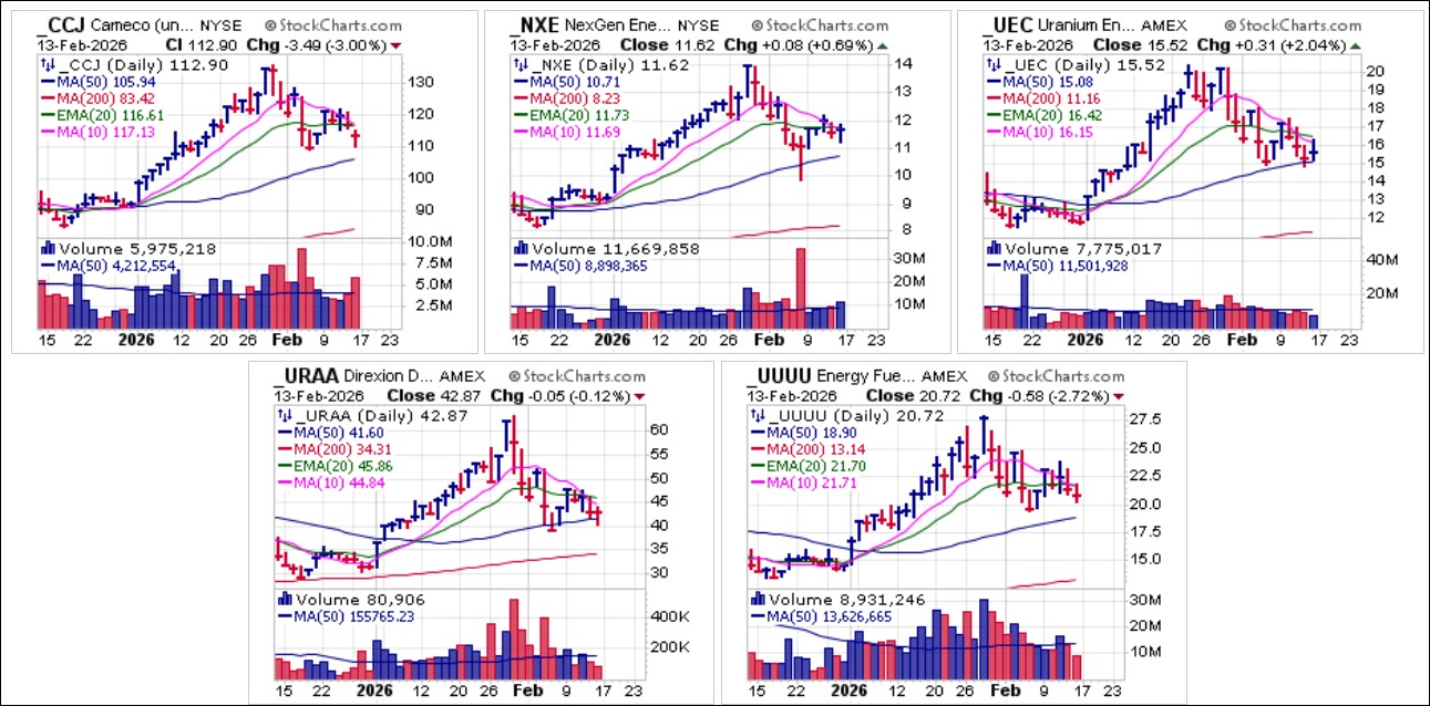 Certainly we can see that uranium names that we reported on as long set-ups in early January have also come apart and/or corrected sharply following strong upside moves in January.