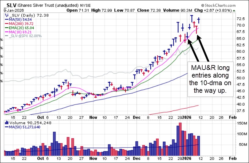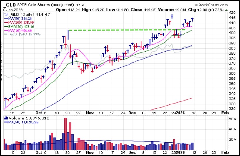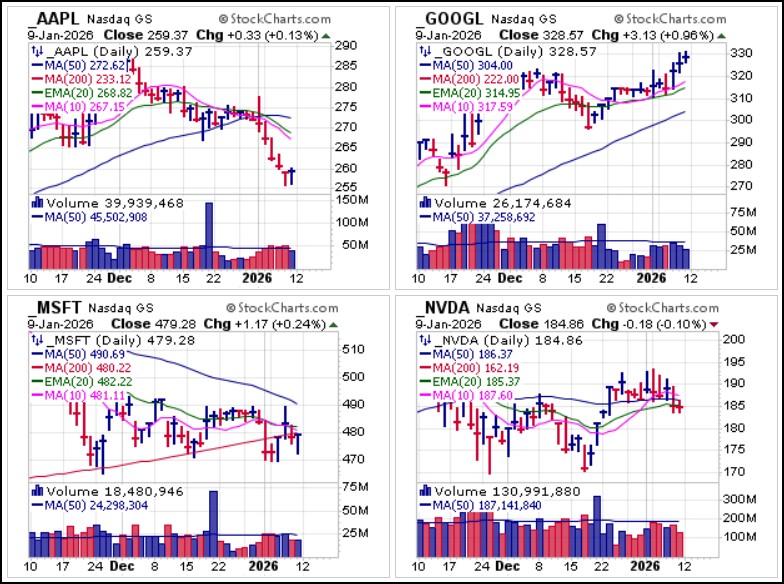While the tech space has it sweet spots here and there, commodity-related names were running the show for most of the week. This week we will see Q4 2025 Earnings Season start up as several big-stock financials, along with Taiwan Semiconductor (TSM) get things rolling. Tuesday will see the latest Consumer Price Index (CPI) report while the Producer Price Index (PPI) will be released on Wednesday, the day after. The New Year has just begun, but already we are seeing a lot of interesting and profitable action among individual stocks.The Market Direction Model (MDM) remains on a BUY signal.
