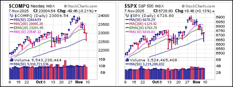 Friday's market bounce was logical as the tech centric indexes posts U&Rs at their 50-dmas while most stocks were extended on the downside and in potentially near-term oversold positions. It is now a matter of seeing how this rally holds up as we enter the new trading week.The Market Direction Model (MDM) switched to a CASH/NEUTRAL signal on Friday morning, November 7, 2025.