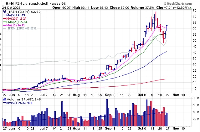 This remains a difficult environment where volatility is the rule of the day against a backdrop of suddenly shifting trade news and tariff threats from Trump. One of our best-performing names, IREN Ltd. (IREN) illustrates this after triggering a Seven-Week Rule sell signal when it violated the 10-dma earlier in the week. That led to a quick shakeout at the 20-dema which was also an MAU&R long entry, and IREN went on to close the week back above the 10-dma. The primary issue here is that holding the stock would have required sitting through a -42% decline off the peak!