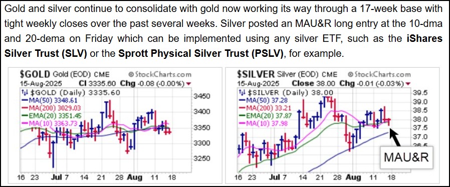 The optimal long entry in silver was discussed in this report when it was previously named the Focus List Report when silver posted an actionable MAU&R on August 15th. At that time silver Spot Silver was trading at $38.00 an ounce.