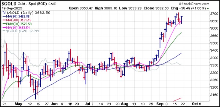 Spot Gold cleared the $3,700 an ounce level, peaking at $3,707.58 on Wednesday before backing down to 10-dma support on Thursday and pushing back to the upside on Friday.