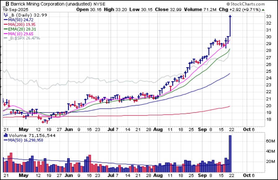 We have reported on miners many times during 2025 with the most latest Pocket Pivot Review in the space coming on Thursday as big-stock miner Barrick Mining (B) posted its second pocket pivot in a row along the 10-dma.It then streaked higher on heavy OpEx volume to post a new 12-year high.